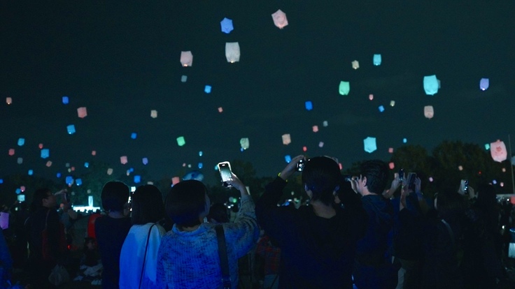 スカイランタン450基に、それぞれが願い事を書いて、一斉に夜空に放つことで、幻想的な光景を作り出します。