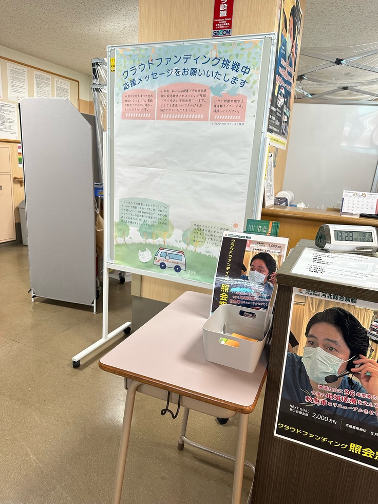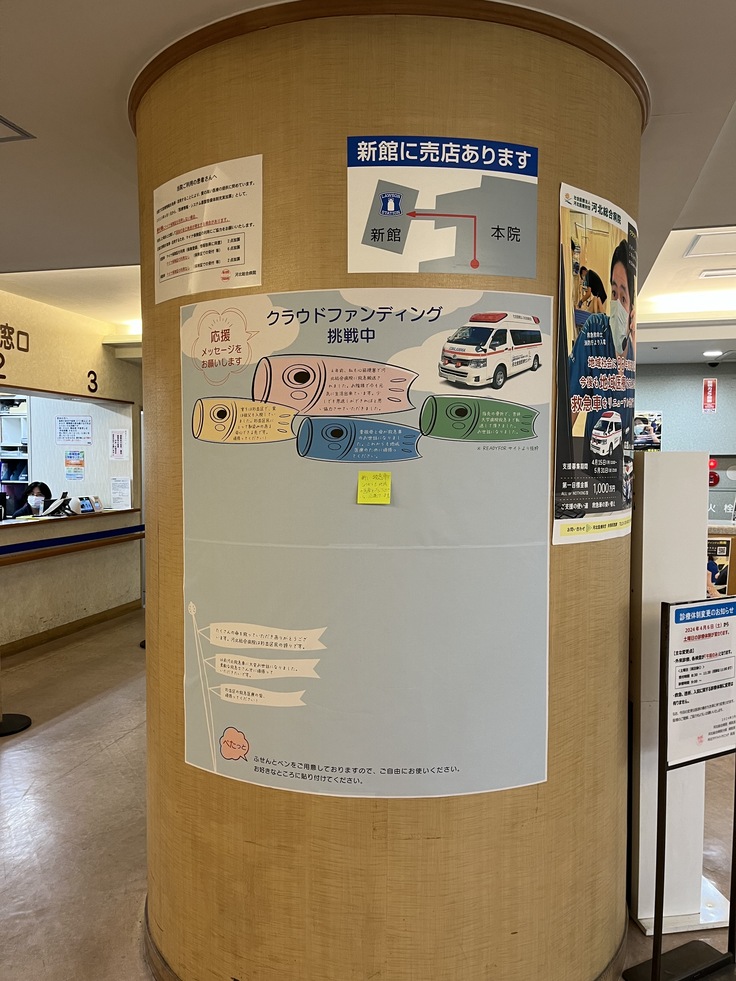 この度、河北総合病院 正面入口を入って右手にクラウドファンディング専用窓口を設けました。