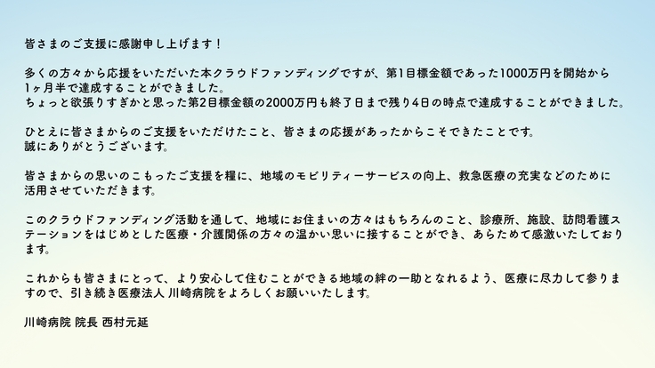 みんなの救急車プロジェクト ~12th week~ |NEXTGOAL達成のお礼