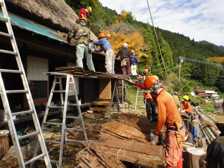 昔は集落みんな各家から人を出して手伝い、「今年はこの家、来年はあの家」と順々にみんなの屋根をみんなで維持していたそうです。こういう相互扶助の文化を上勝町では「手間替え(てまがい)」と呼んでいます。貨幣を介しての労働ではなく、お互いに労働で返す。屋根替えは、手間替えの代名詞と言っても良いかもしれません。