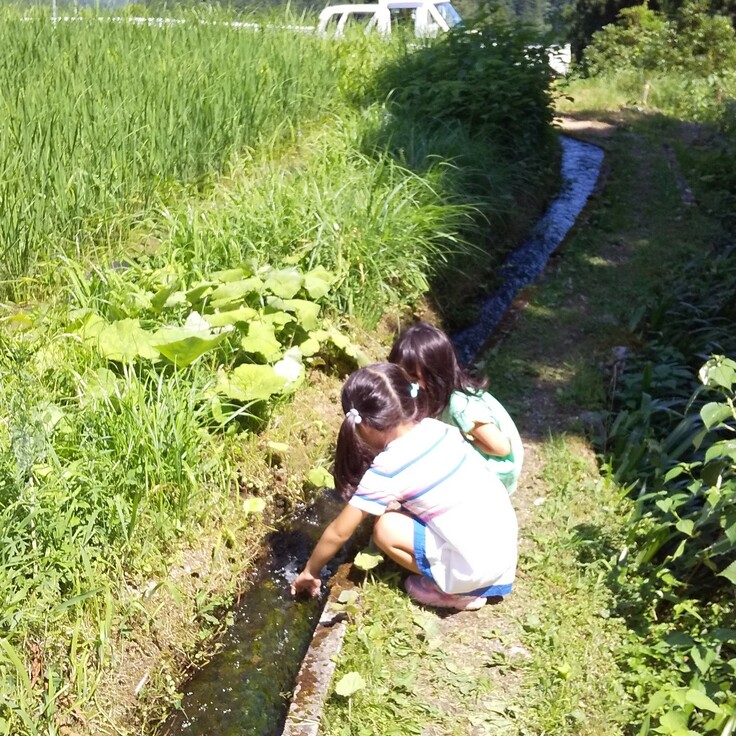 八重地は最上流の集落なので、水はものすごくキレイです。田んぼの側を流れる用水は、子どもたちの格好の遊び場所になります。