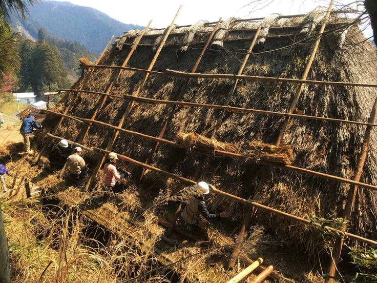We started collecting thatch in 2019, and this is the third year of harvesting and storing. In February 2021 we had 1000 bundles so we were determined to to rethatch. That's what we had planned but we had no choice but to postpone the project to the following year, as many of the local leaders who has the knowledge to thatch the roof got injured or sick, one after another. The situation became grave when the primary thatcher, who had been the driving force behind the project, passed away suddenly in April 2021. The news of his death caused a sadness in the town....It’s hard to express my sorrow but this is the reality of the depopulated and aging town.The people who have important skills and knowledge will not stay forever. Due to the decrease in the number of people with knowledge of thatching as well as the primary thatcher who passed away, we lacked instruction how to the entire process. This time we reached out to a contractor who does thatching in the Iya Valley area of Tokushima Prefecture. The contractor agreed to guide us in the re-thatching and provided us with a reasonable quotation. Even so though it was a reasonable quotation, the total amount of money we need was about 2 million yen. We managed to source 500,000 yen by ourselves. We are asking for a portion of the remaining 1.5 million yen through this crowdfunding campaign (All or Nothing method). Even if we don't achieve this goal, we will still go ahead with the rethatching the roof. The re-thatching will not end with this one time, and the other three sides will be replaced soon. The market price for thatched roofs is said to be 15 to 20 million yen when the materials and work are outsourced and the entire roof is replaced. In order to maintain the roofs, we need to be able to procure the materials and replace the roofs ourselves. Time is critical because we feel like we only have a few chances to inherit the skills from our grandfathers and elders.