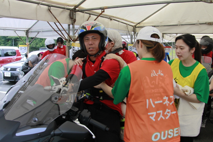 今年は9名の参加者が当日来場し、専用ベルトを装着して鈴鹿の風を感じて頂けました。