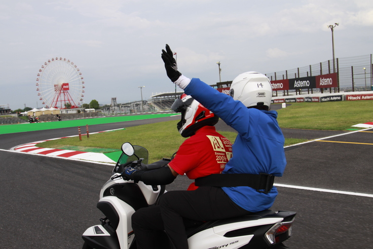 鈴鹿サーキットを2周しスタート地点へ戻ってきます。
