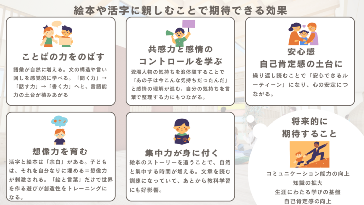本とともに過ごす時間が、子どもたちにとって、安心できる居場所であり、心を育てるひとときであり、そして未来をつくる小さな一歩になればと願っています。