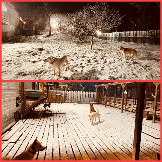 お山での昨日の雪は少なかったですが犬達みんなは少し不自由に過ごしていました。