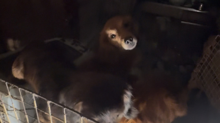 小型犬のバリケンに身動きが取れない状態で二頭ずつ詰め込まれていた様々な子達を見ながら