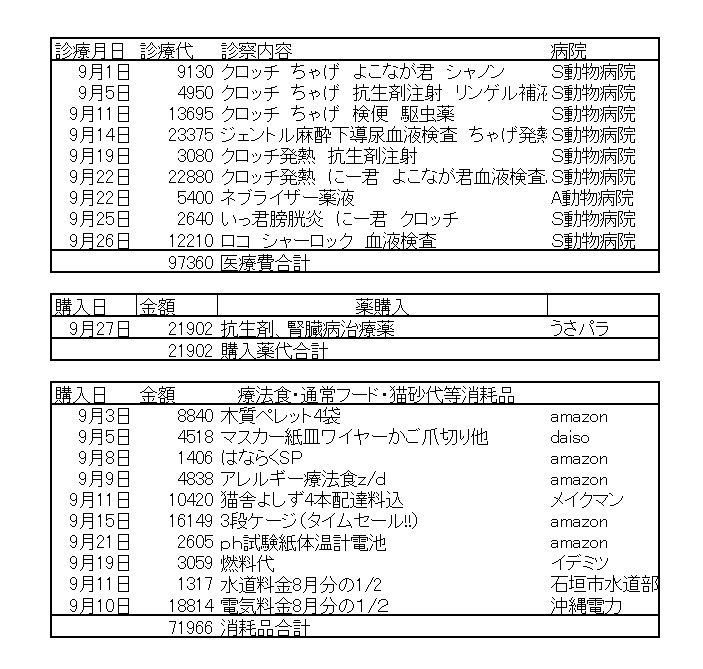 皆様のご支援のおかげで、9月もたくさんの猫たちに治療を受けさせて頂きました。心から感謝申し上げます。