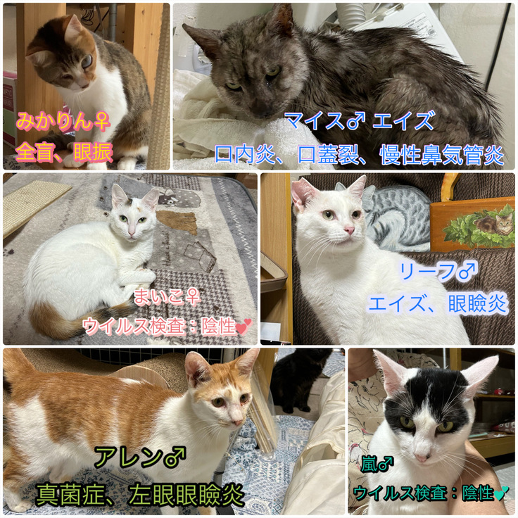 ●まいこ 歯肉炎がありますが、ウイルス検査でエイズも白血病もないことがわかりました。県外の方から里親希望のお声がかかったところなので、ほっとしました。
