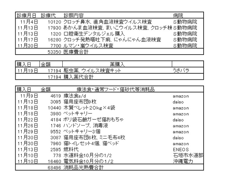皆様のご支援のおかげで、11月もたくさんの猫たちに治療を受けさせて頂き、
