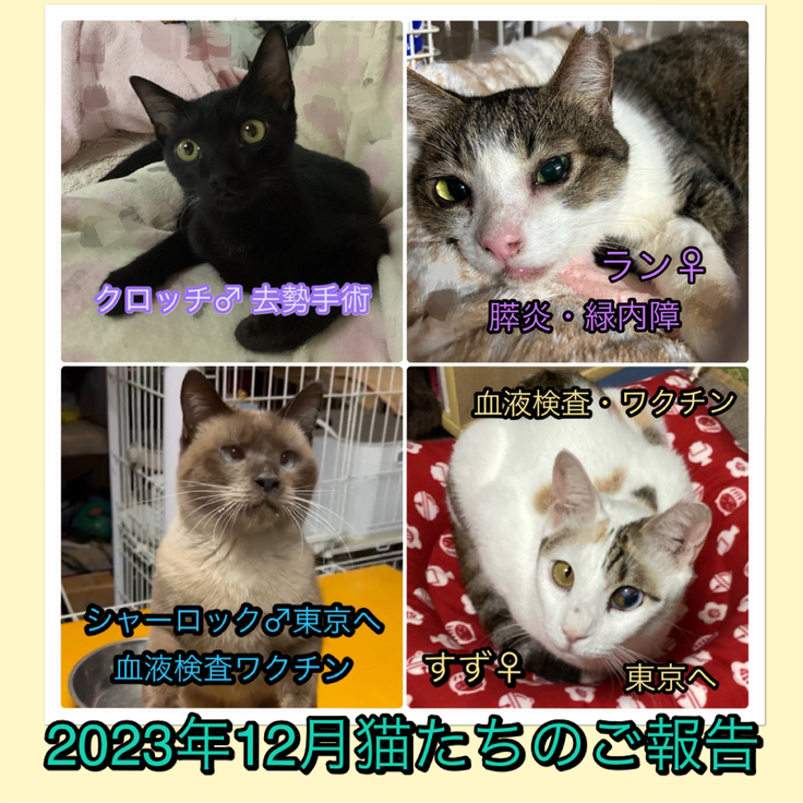 ⚫️すず シャーロックと同じくKさんに受けて受け入れてもらい、東京に行き、血液検査やワクチン接種をしてもらいました。検査結果も良好だったそうです。