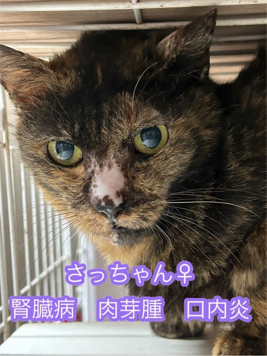 ⚫︎さっちゃん♀ 腫瘍と思われたブヨブヨは、肉芽腫だったようで、抗炎症剤が効いて、すっかりきれいになりました。8月末頃に食欲が落ち、よだれが出て口の中が痛いようでした。せっかく慣れてきたのですが、痛みのせいで、またビクビクして怖がるようになってきています。口内炎の注射で、今は食欲回復しました。腎臓病もあるのでリンゲル補液もしてもらいました。