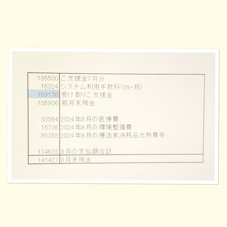 8月も大きな手術等はなかったので、残金は繰越させていただきます。