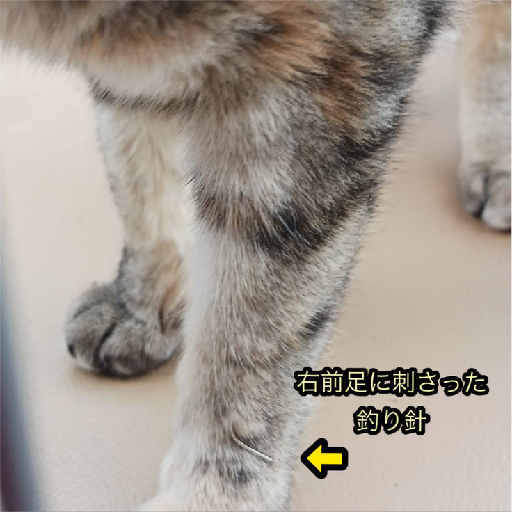 ⚫︎ネネコ 前足に釣り針が刺さった猫がいると連絡があり、ボラさん