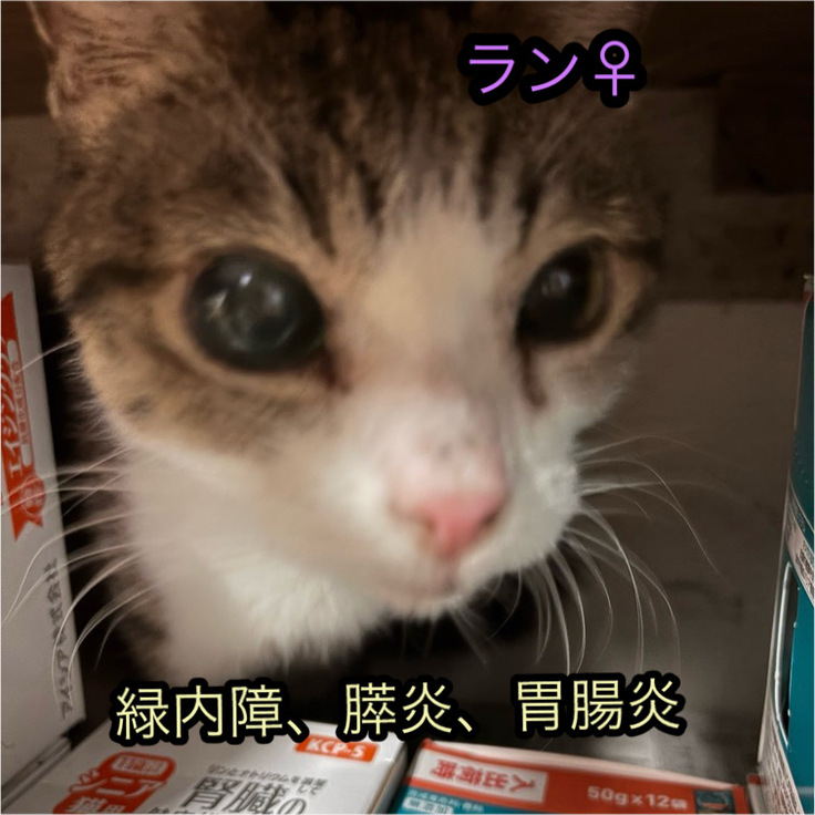 ⚫︎ラン♀ 角膜潰瘍 緑内障 目薬点眼継続中。今も時々嘔吐・下痢するので、胃腸薬と下痢止めを処方してもらいました。食欲は旺盛です。