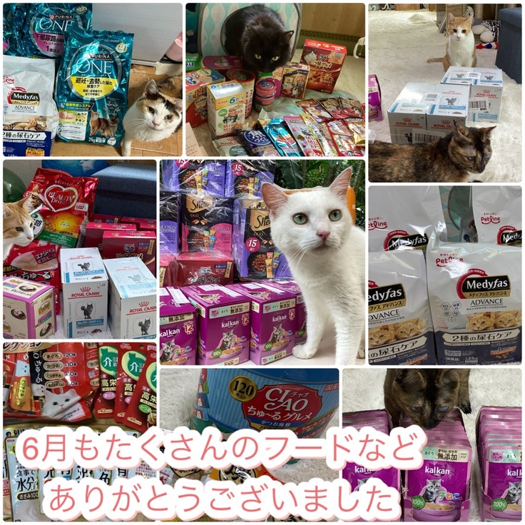 6月も猫たちへのフードなどたくさんご寄付頂き、