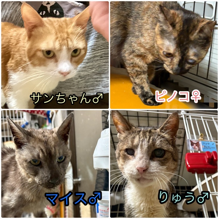 ⚫︎口内炎の猫が多く、うさ、りゅう、あかんま、マイスは