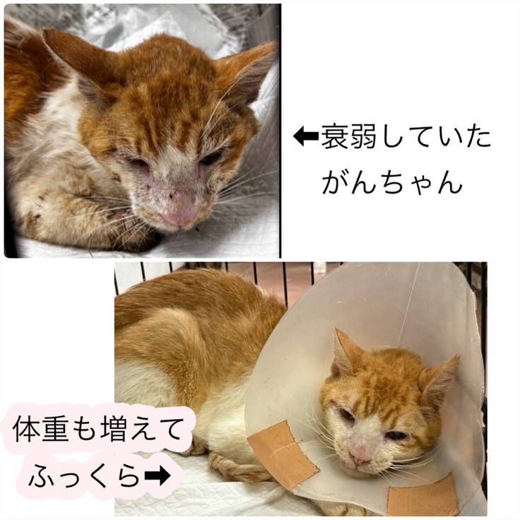 ⚫︎がんちゃん 食欲も湧き、預かりさんの手厚い看護で順調に体重も増えてお顔もふっくらしました。