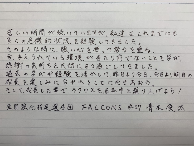 #keepthefutureoflacrosse メッセージリレー#33 青木 俊汰