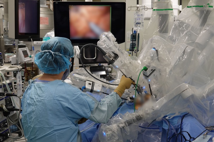 治療の必要な症例に関しては、消化器外科・消化器内科・放射線科・病理医・麻酔科などを含めた合同カンファレンスにてスタッフ間で連携し、治療方針・症例検討を行なっています。また、近年増加が見込まれる炎症性腸疾患(IBD)の診療体制に貢献すべく昨年にはIBDセンターを立ち上げ、内視鏡手術における手術支援ロボット「ダヴィンチ」を導入するなど、医療の質の向上に努めています。