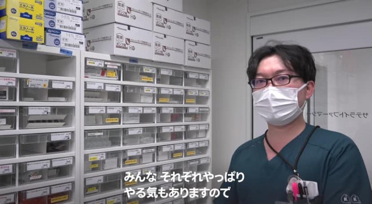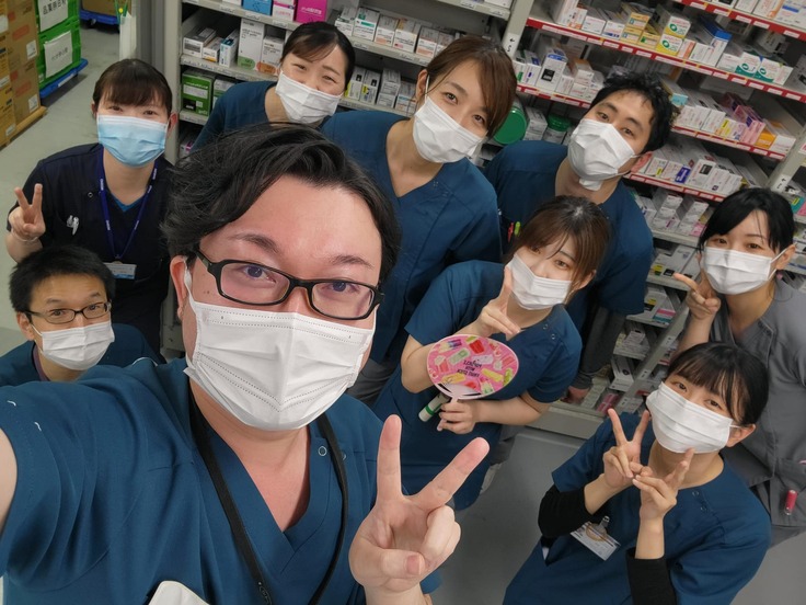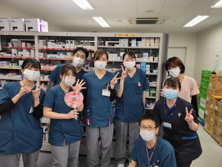 当院は色々な最新機器(例えば分包機)をそろえているのと、薬剤課には薬剤師以外に薬剤事務(薬剤秘書)さんや医薬品卸(明祥)のスタッフさんもいつも複数いてくれて、業務分担してくれています。薬剤師が本来業務に専念できるようたくさん色々なことをやってくれていて本当に助かっています。