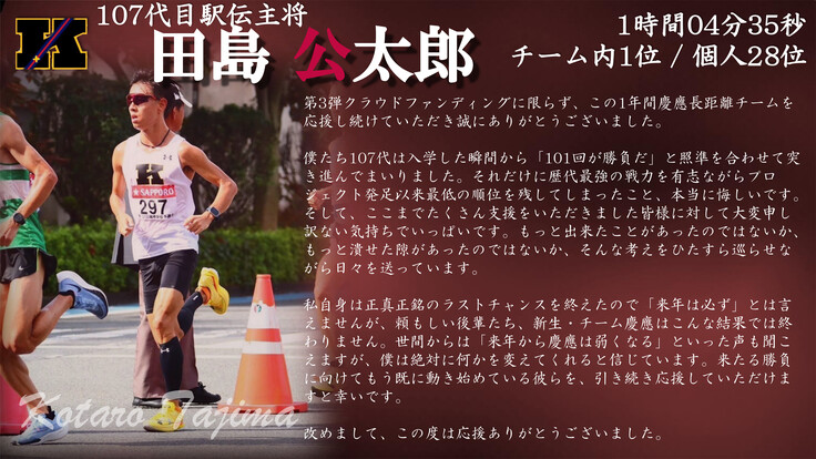 今後とも慶應義塾體育會競走部長距離ブロックへの熱いご声援の程よろしくお願いいたします。
