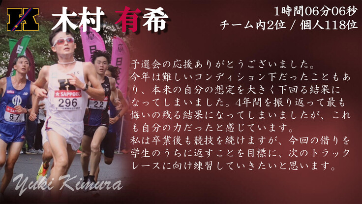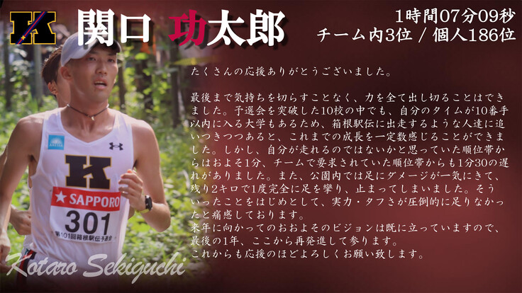186位 関口 功太郎(経3・宇都宮)1:07:09 初