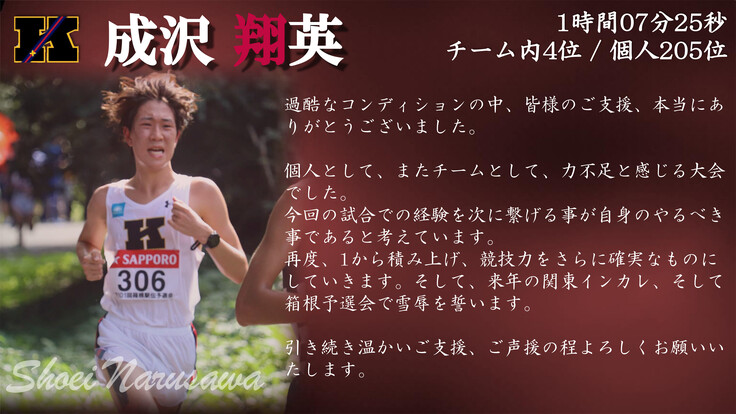 205位 成沢 翔英(環2・山梨学院)1:07:25 初