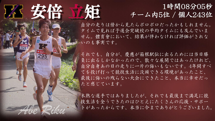 243位 安倍 立矩(理4・厚木) 1:08:05