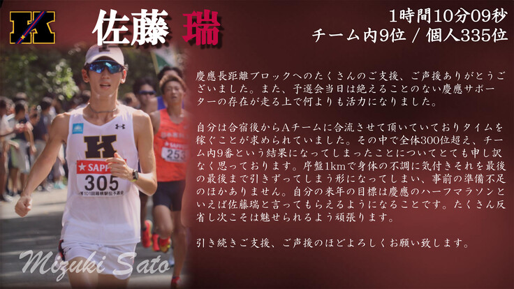 335位 佐藤 瑞 (法2・慶應義塾)1:10:09