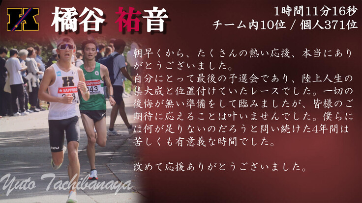 371位 橘谷 祐音(理4・新潟) 1:11:16