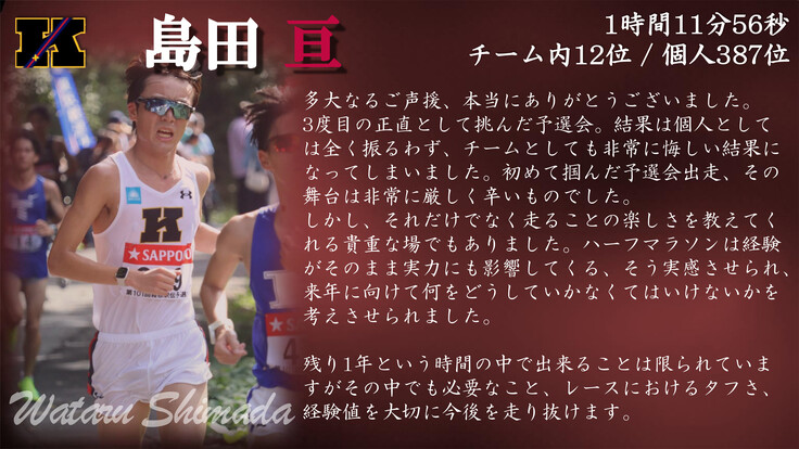 387位 島田 亘 (法3・慶應志木)1:11:56