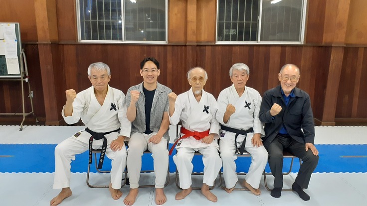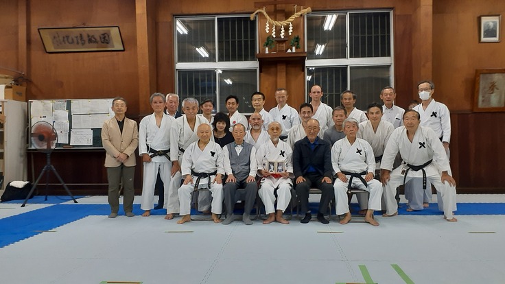 稽古は、船越義珍師範の直弟子95歳の岩本先輩も元気に参加され、撮影に向けての稽古と、同じく直弟子であった眞下先輩の追悼稽古を行いました。