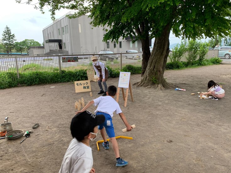 ・また試験的に、市内の児童館1館にモルックを寄付し、そこで2回教室を開きました。スタッフの方にご意見を聞いたり、子どもたちの反応を見たりしてきました。