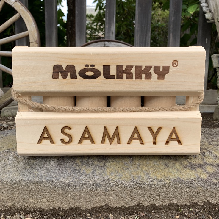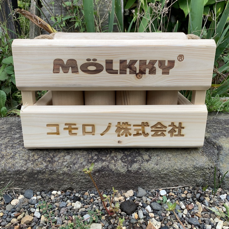 また5つのモルックの箱に、5つの企業・団体のお名前をレーザー刻印しました。