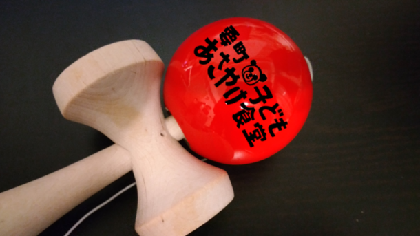 ・要町あさやけ子ども食堂のロゴをプリントした「記念けん玉」