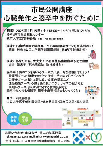 きたる2月15日に萩市総合福祉センターにおきまして上記の市民講座を実施します。