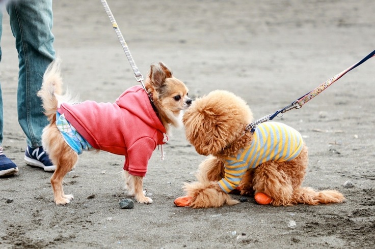 浜辺でわんこたちも楽しそう♪