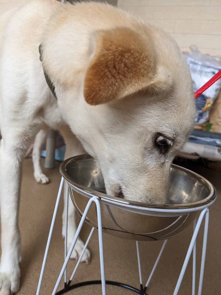 早朝のお散歩後のごはんタイム。