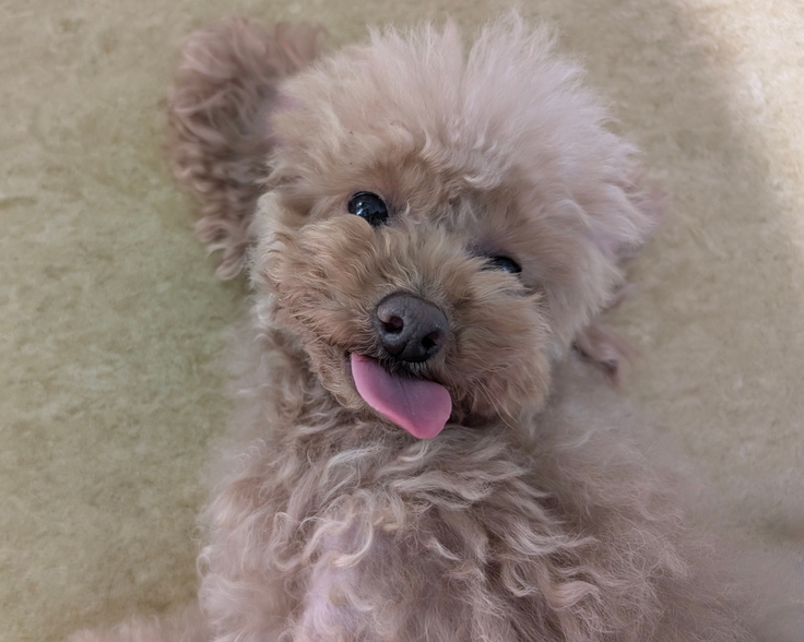 おなかをなでなでしてたらペロっと舌をだすタピさん