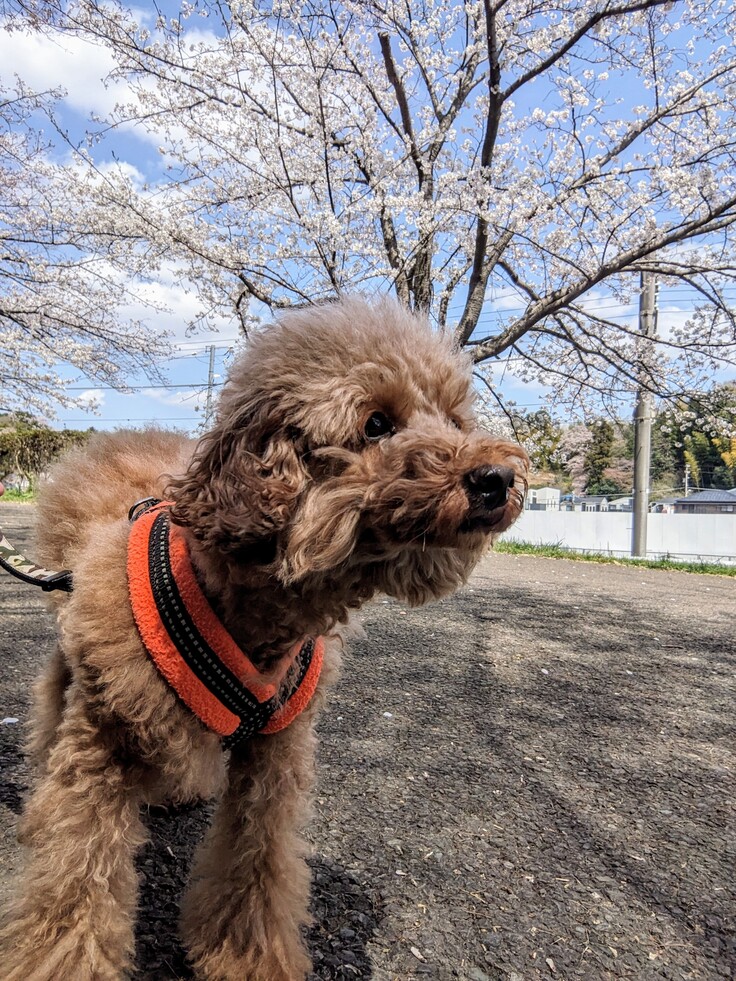 わんこ達はしっぽを高々とあげて、桜に彩られたお散歩コースを嬉しそうに歩いています。