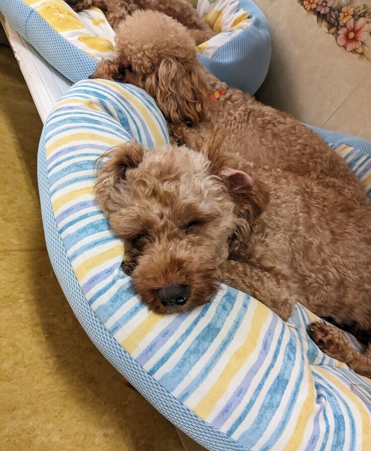 新犬のナツちゃん、ミリちゃんと仲良くおやすみ中💤