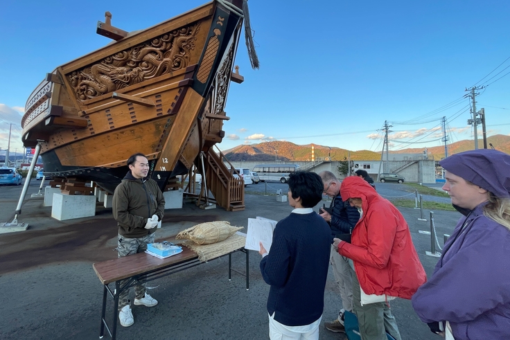 通訳越しということもあり、大工さんの想いや、船の神様である「おふなだまさま」などの微妙なニュアンスをどれだけ伝えられたか不安ではありますが、そこはやはり雑誌の記者。質問を交えながらとても興味深く聞いてくださいました。