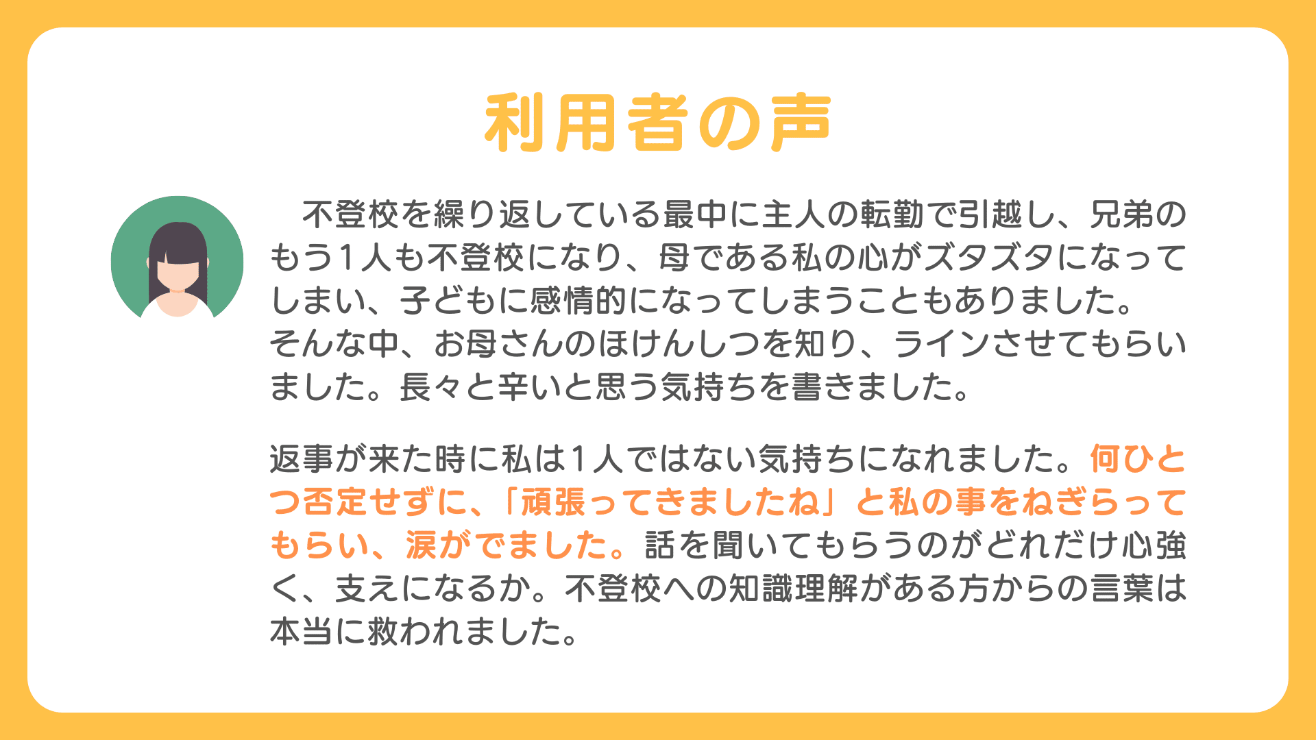 不登校で孤立する親子にとって「たより」になるサイトであり続けます。