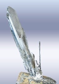 素晴らしい結晶を持つ、世界に類のない巨晶・美晶の輝安鉱は、愛媛県西条市市之川鉱山で明治8年から昭和32年まで産出され、市之川は、当時国内最大級の輝安鉱鉱山でした。