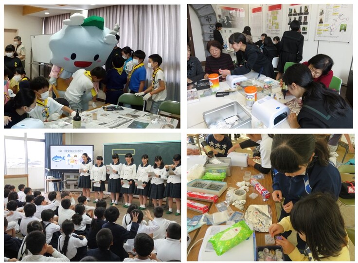 (地域の方々や小学生と交流会しながら輝安鉱の魅力を伝える活動)