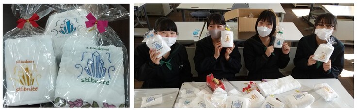 生産するタオルは、今治タオルブランド商品認定を受けております。高校生が取り組む地域活性化と世界一の市之川鉱山産輝安鉱のPRをする目的です。