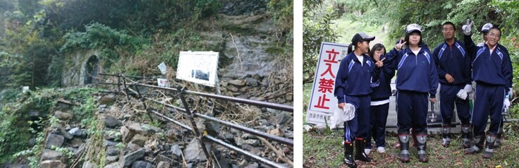 またこれまでにも、台風に見舞われた際、鉱山跡の産業遺構が無残な姿となってきました。現在は、整理されましたが、なお危険なため近づかないよう立入禁止となっています。私たちは、今、行動をしなければ、世界一の輝きと称賛された輝安鉱が産出された西条市の産業の歴史が、埋もれ、消え、失うことになりかねない!!という強い危機感と、この歴史を後世に伝えたいという使命感を持っています。