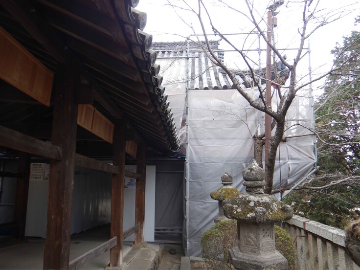 2023年12月4日 安全祈願祭を斎行し、その後12月8日より足場の架設工事に着工しました。