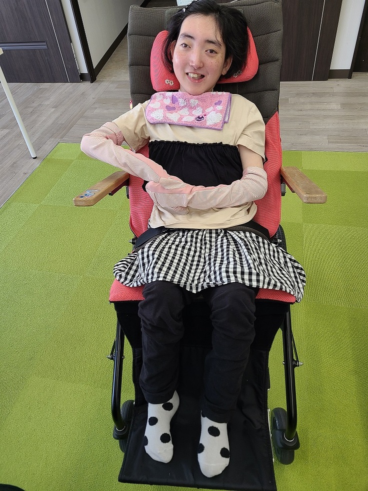 脳性麻痺により体が硬直してしまったお子さんたちは、先輩よりも着替えが困難でした。